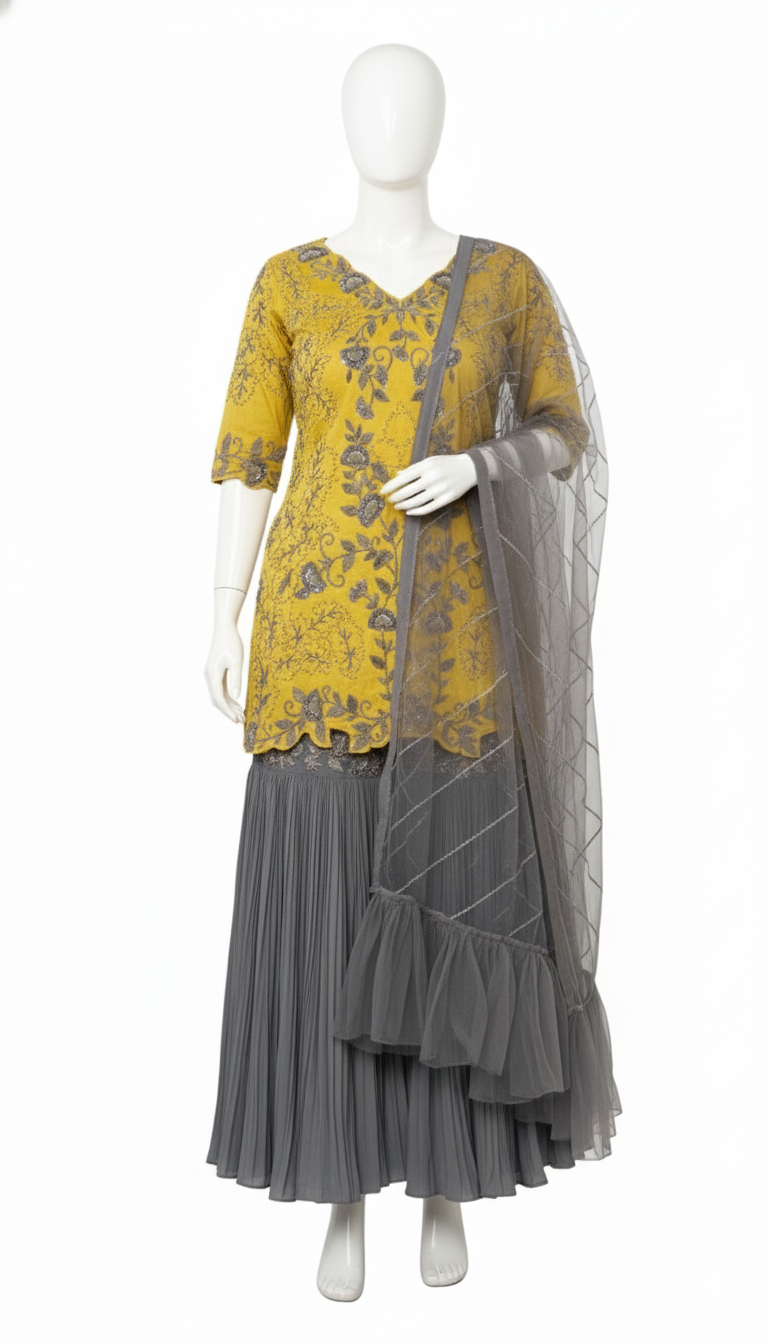 Yellow grey sharara set | Cycle of Samsara (COS)